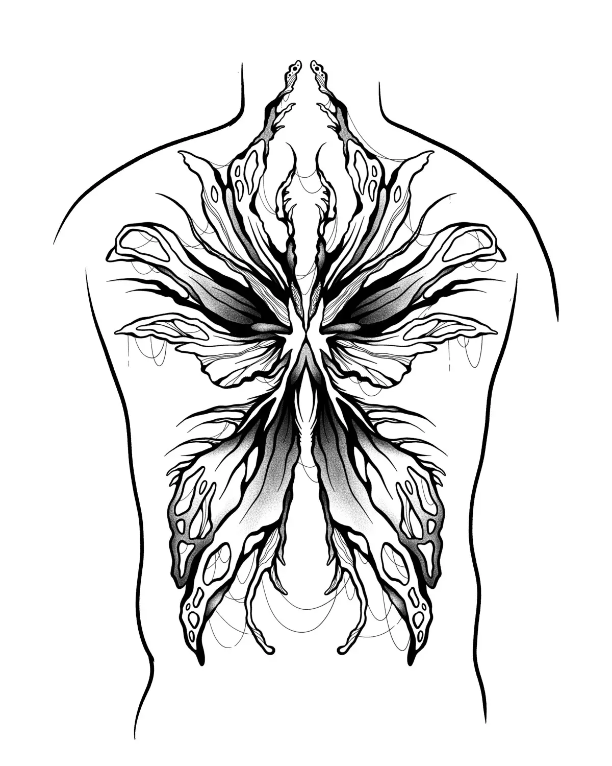 Ce flash est principalement destiné à ornementer des cicatrices de torsoplastie, mais il peut être adapté à d’autres cicatrices, ou juste être tatoué sur une personne sans cicatrice ✨