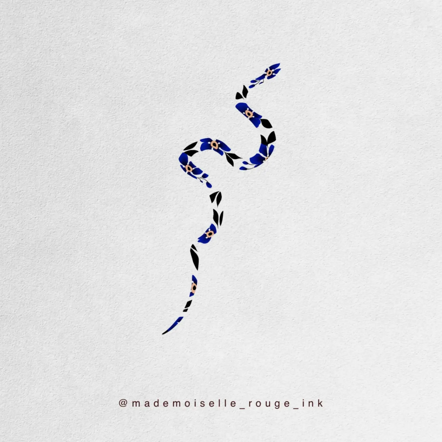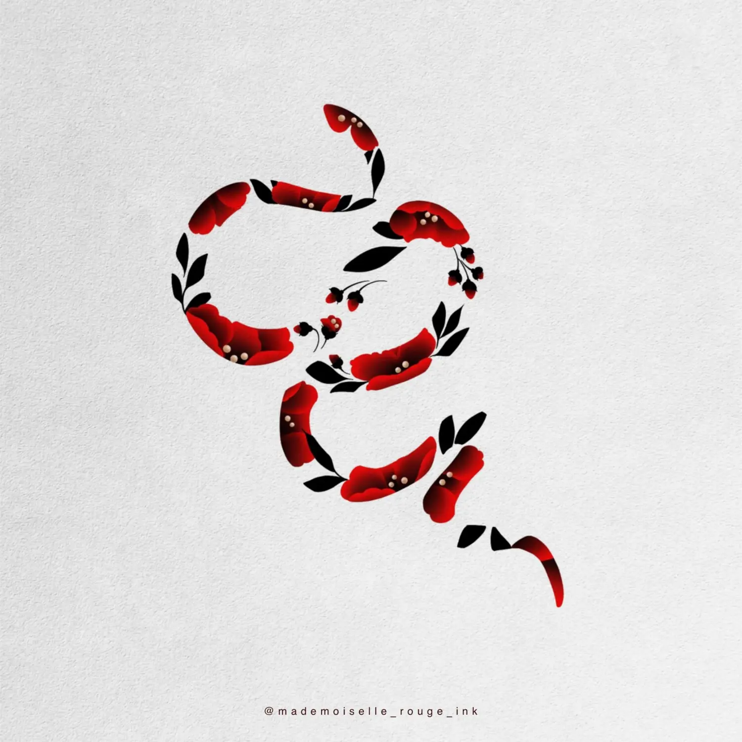 Serpent composé de camélias coréens. Idéal pour suivre les courbes du bras, du flanc, de la cuisse ou du dos selon la morphologie.