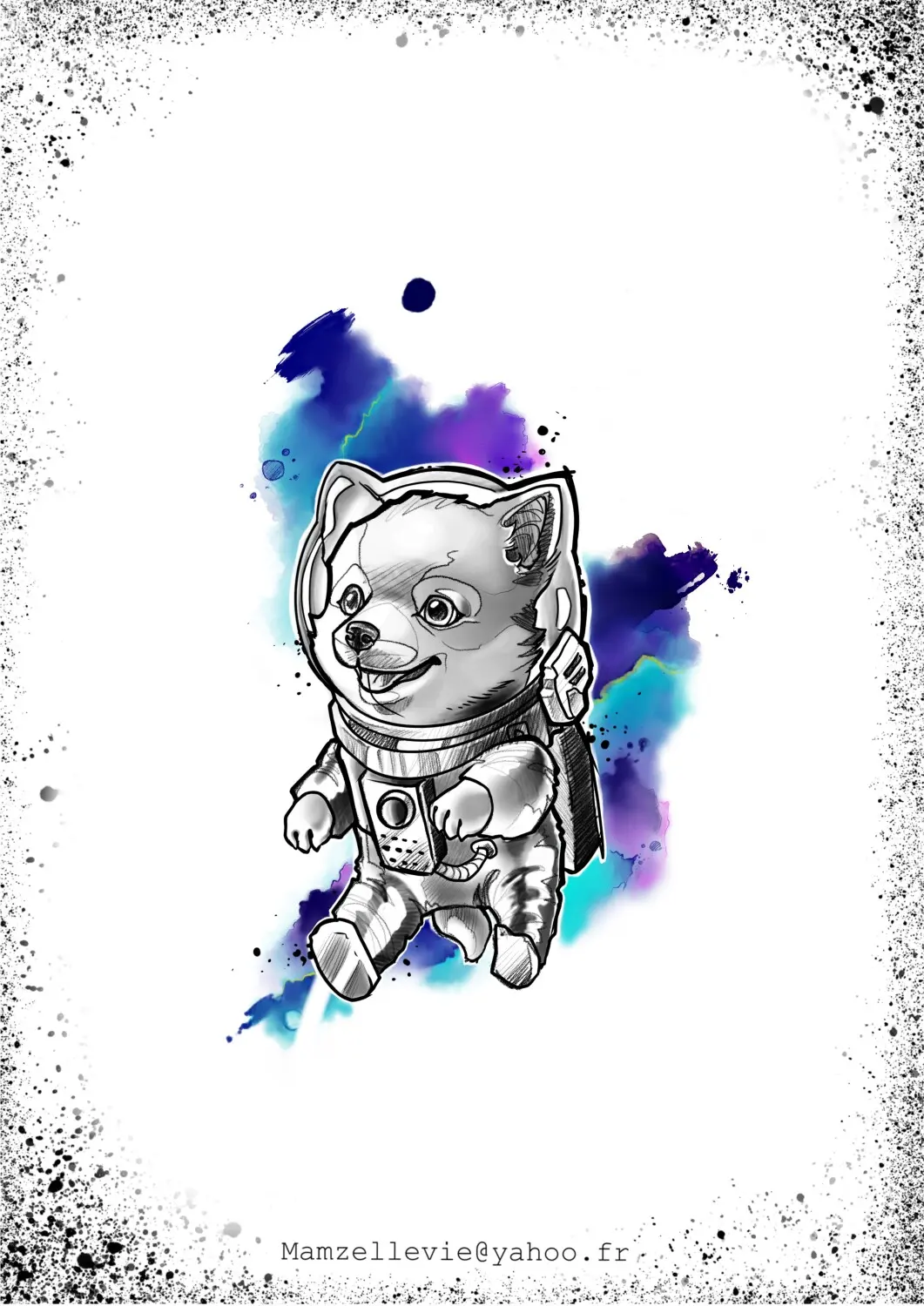 Chien cosmonaute fond aquarelle