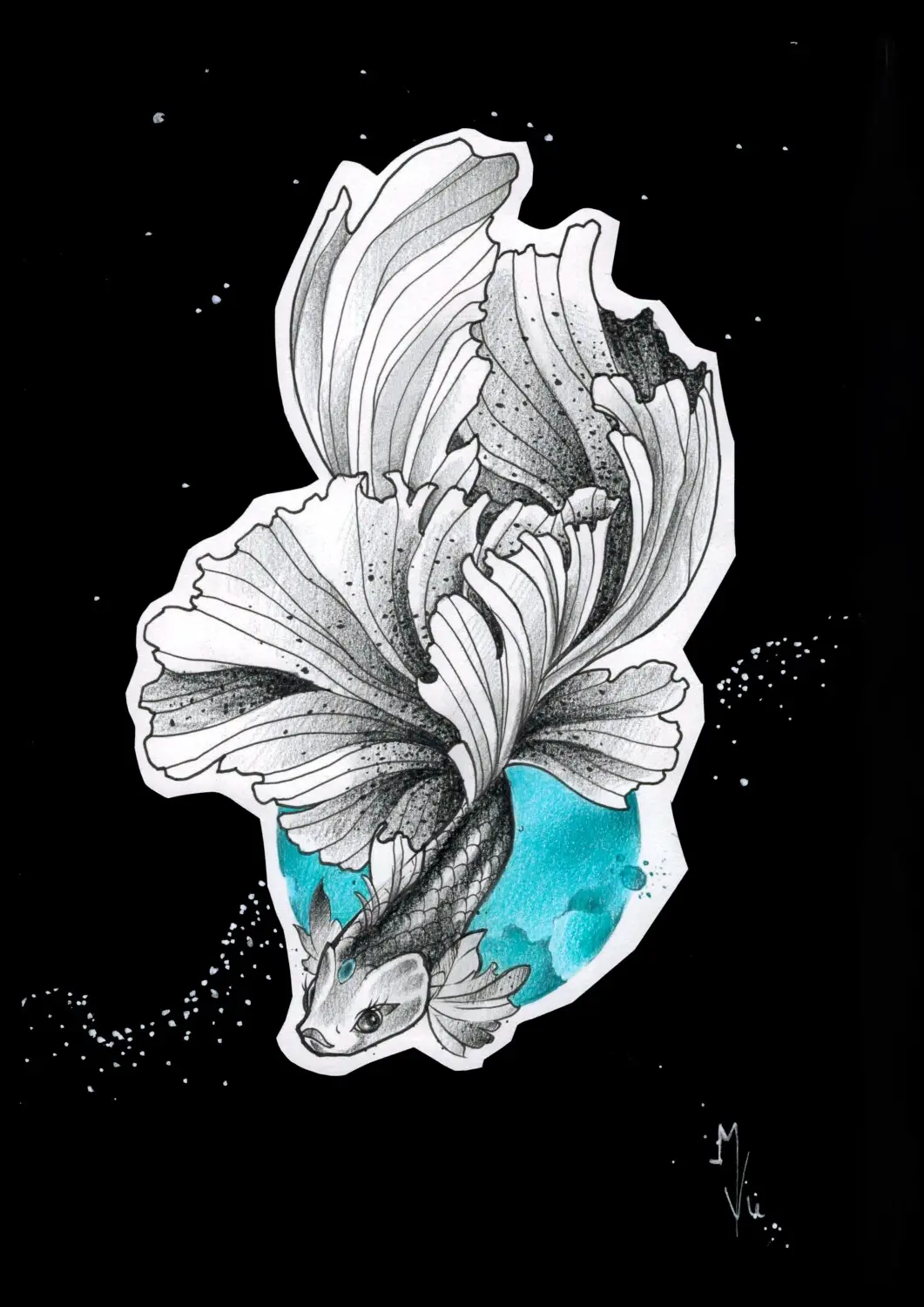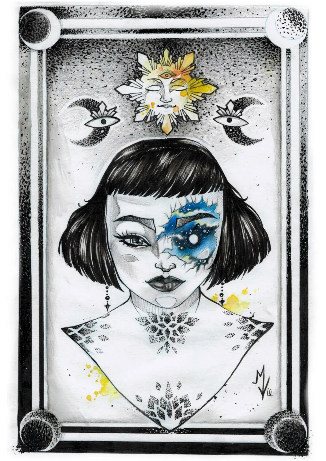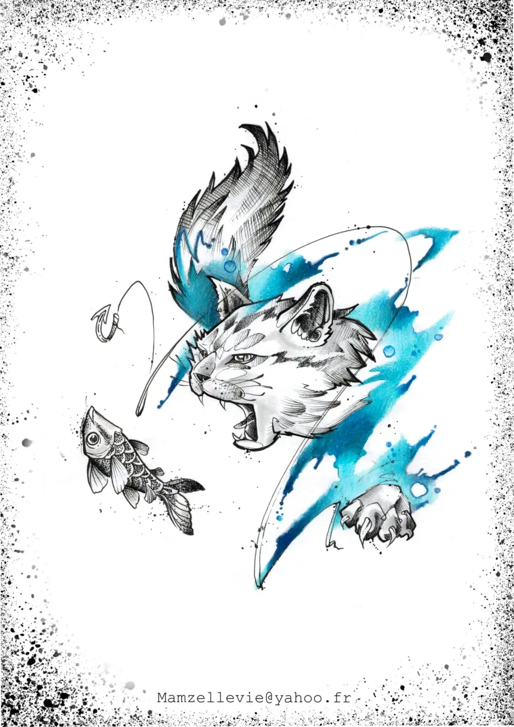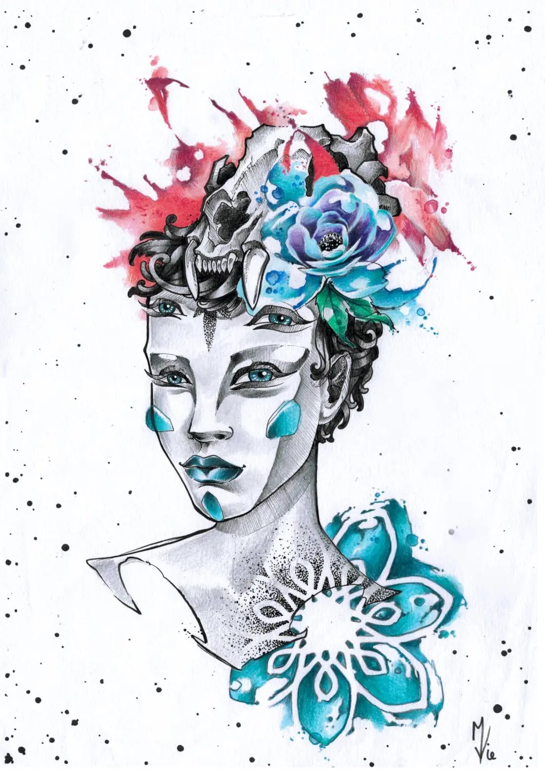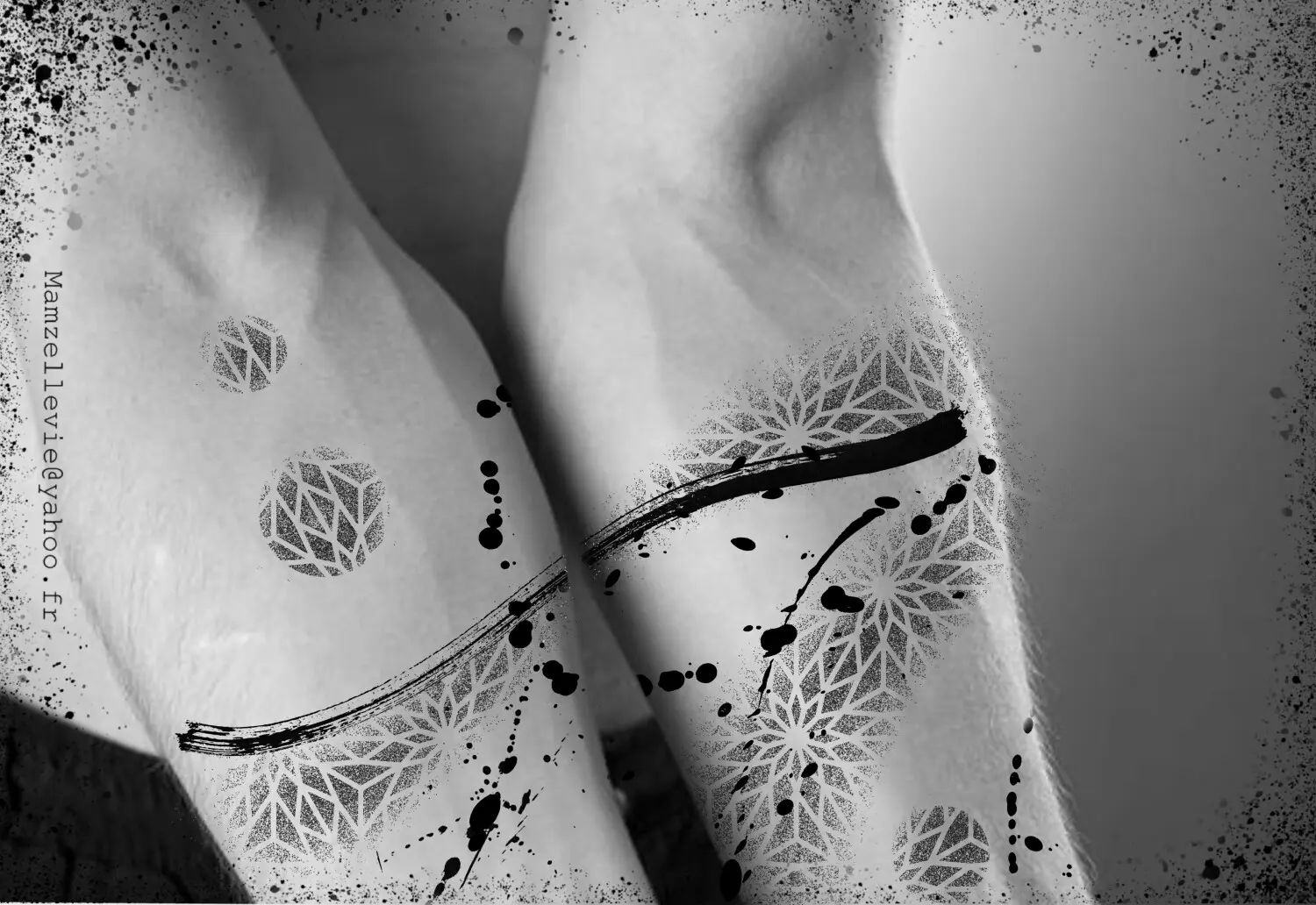 Traînée aquarelle géométrique dotwork