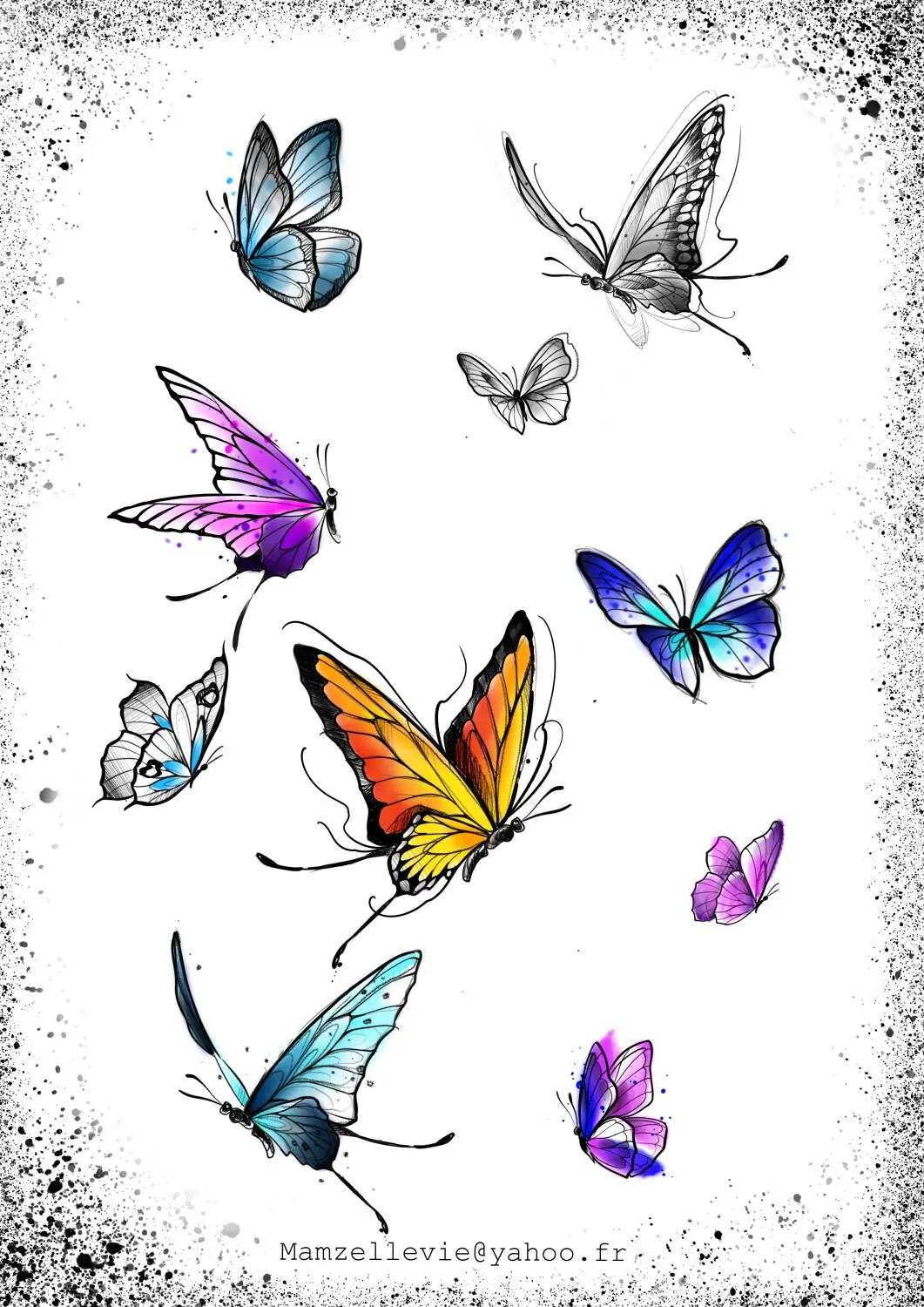 A4 chat noir papillon