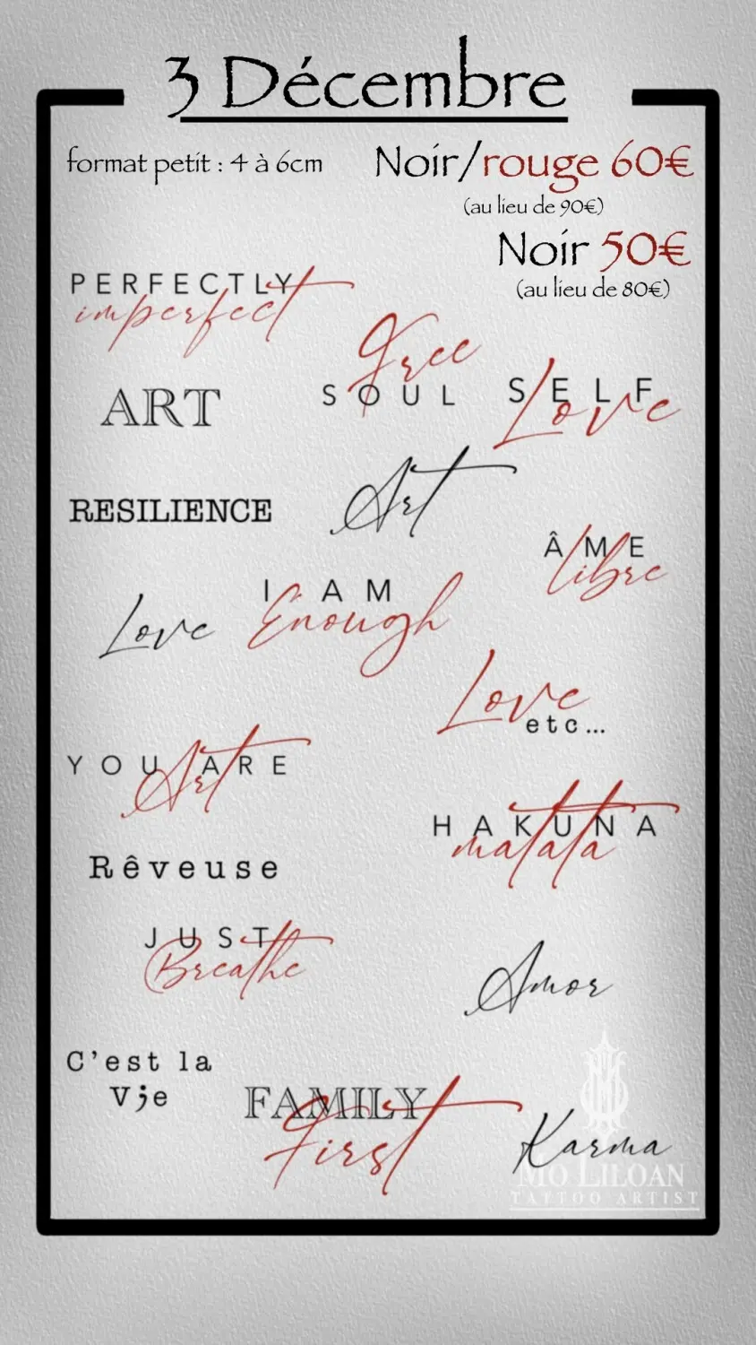 Petit format, 4 à 5cm. Prix spécial Decembre. 50€ pour les mots en noir, 60€ pour ceux en noir et rouge.