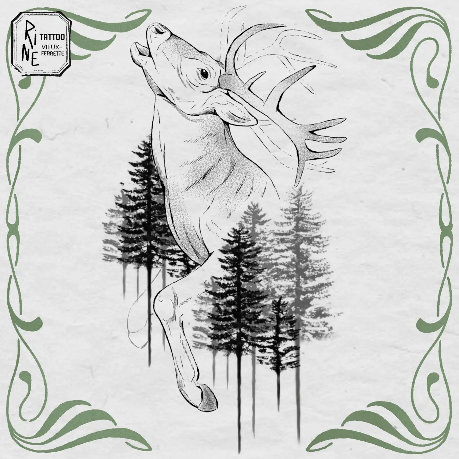 Tête de cerf et feuillage