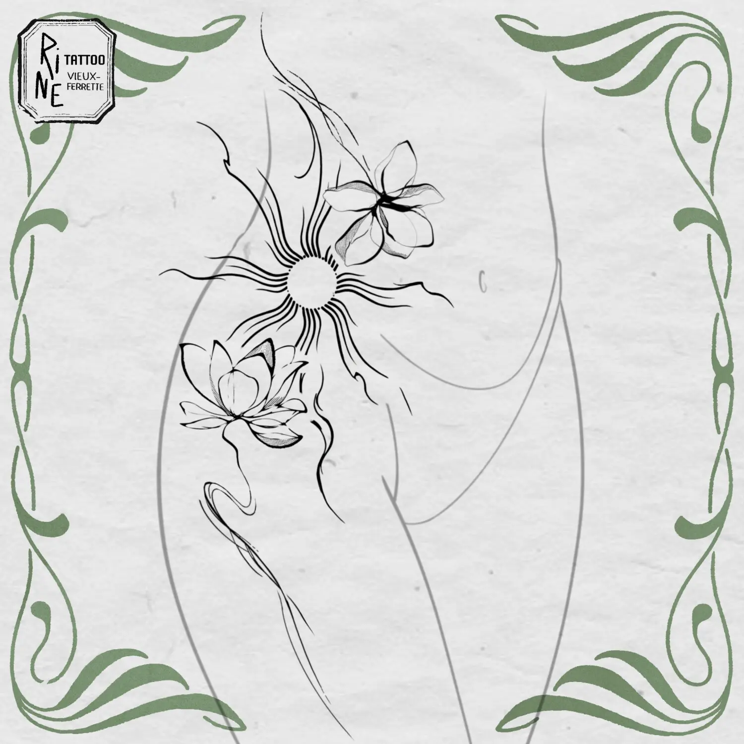 Hanche soleil et fleurs abstraites