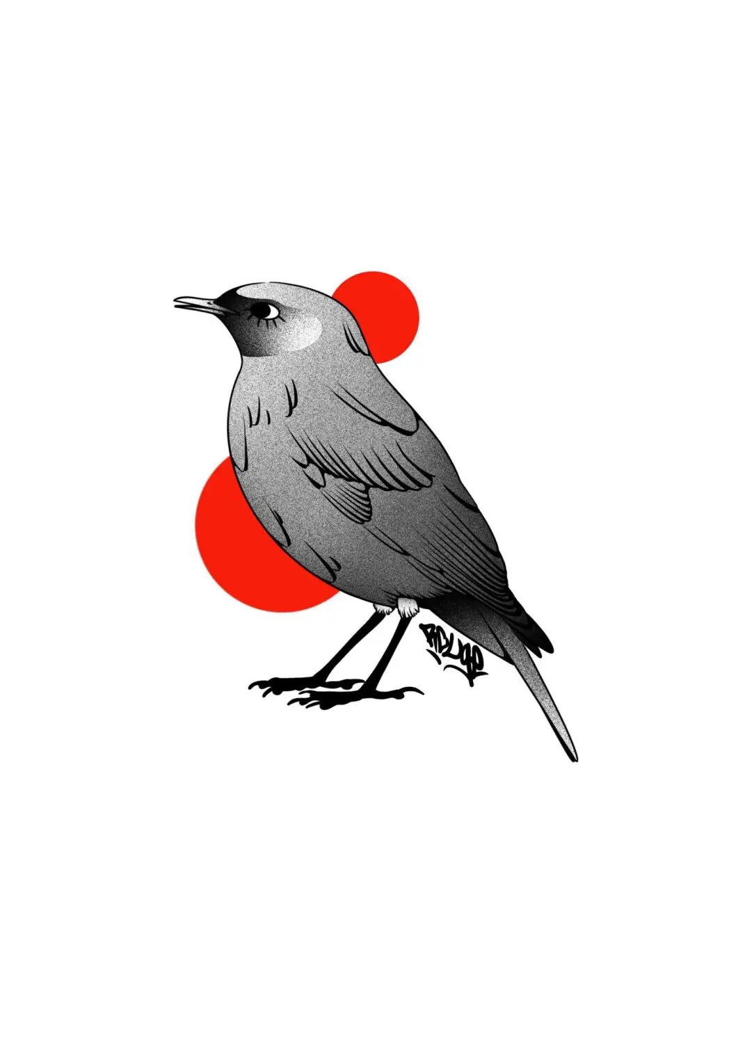 l'oiseau aux cercles rouge