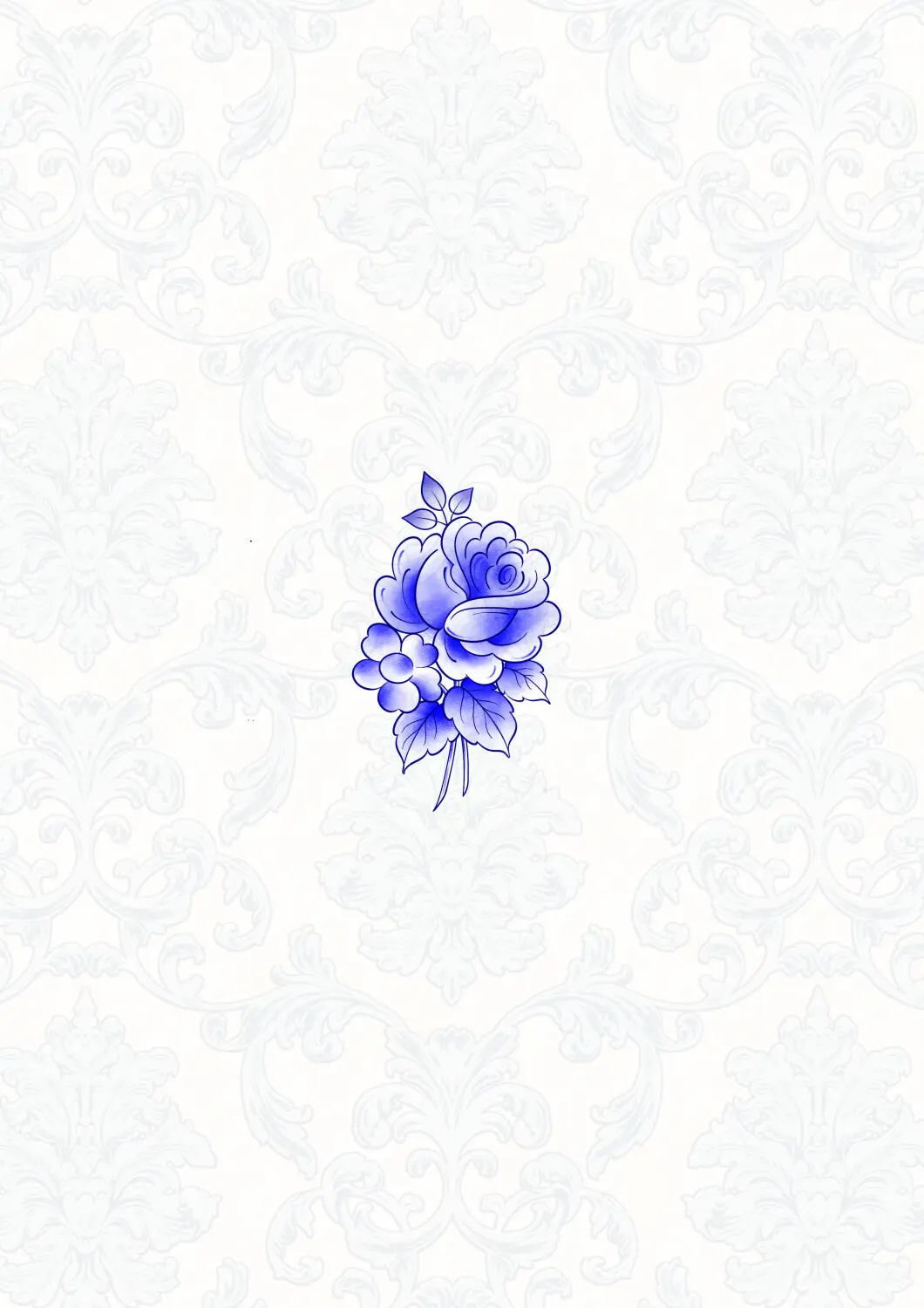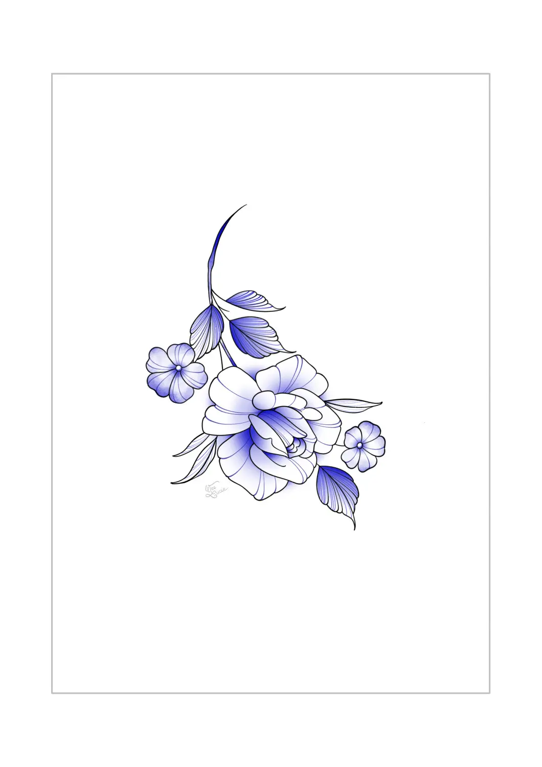 Rose et deux petites fleurs (bleu)