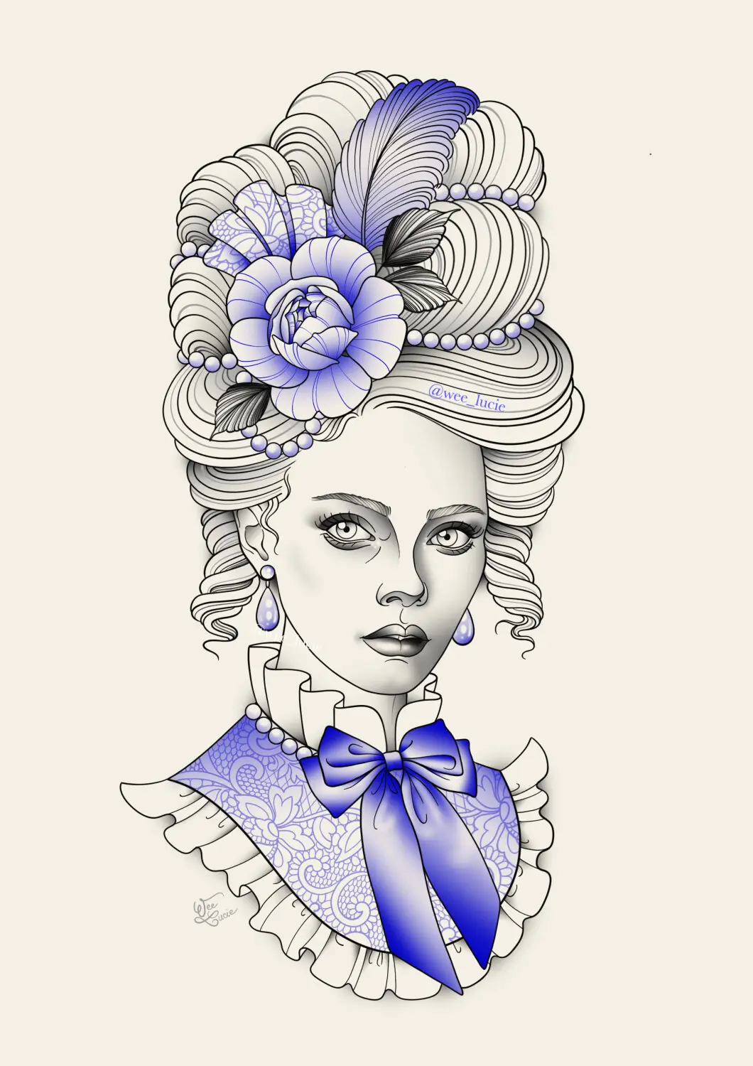 Dame coiffure XVIIIème siècle (bleu)
