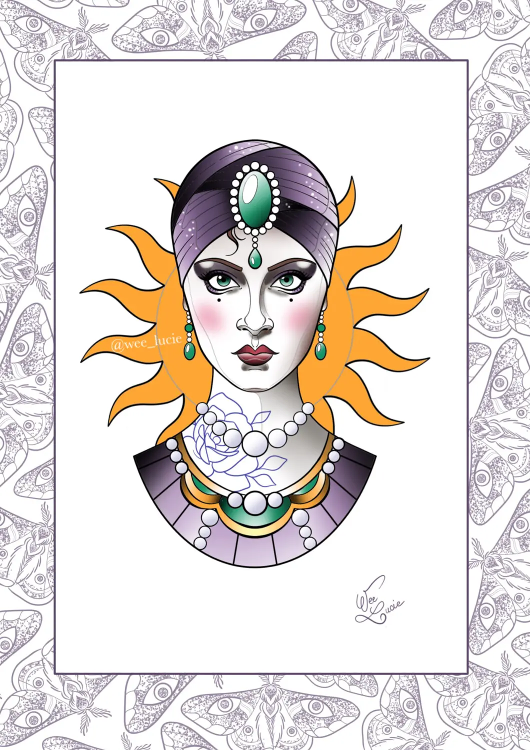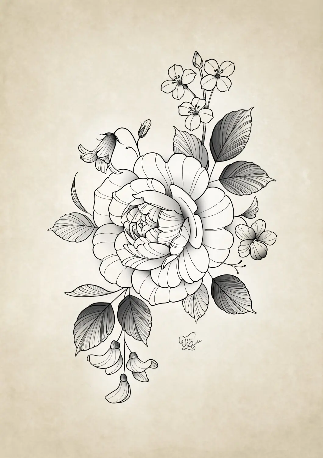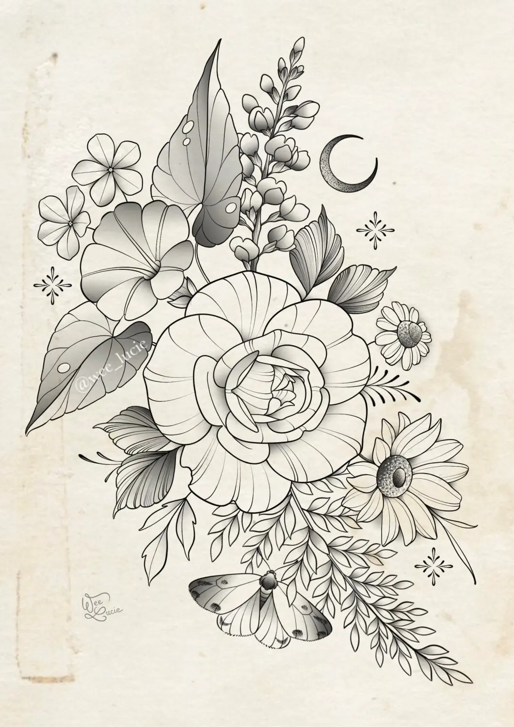 Composition rose liseron lune