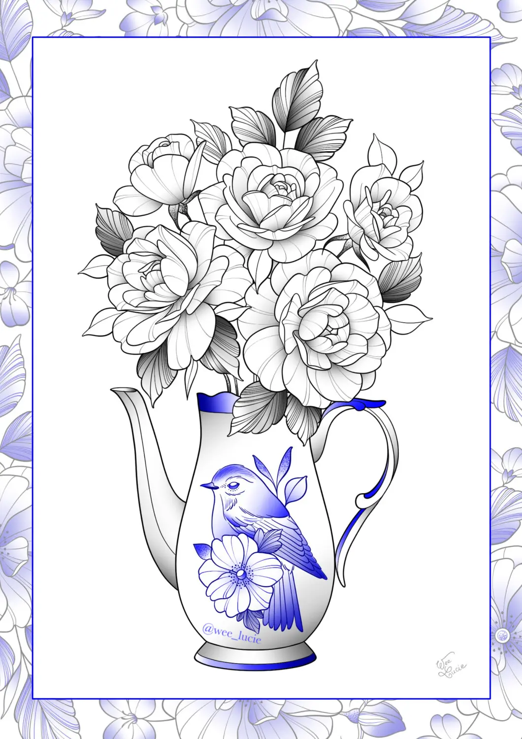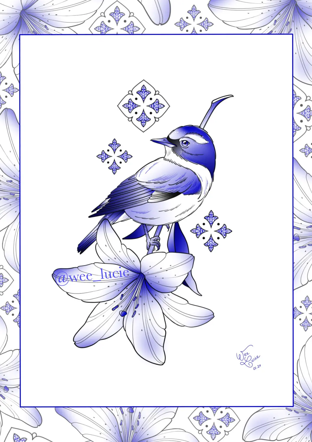 Oiseau bleu et lys