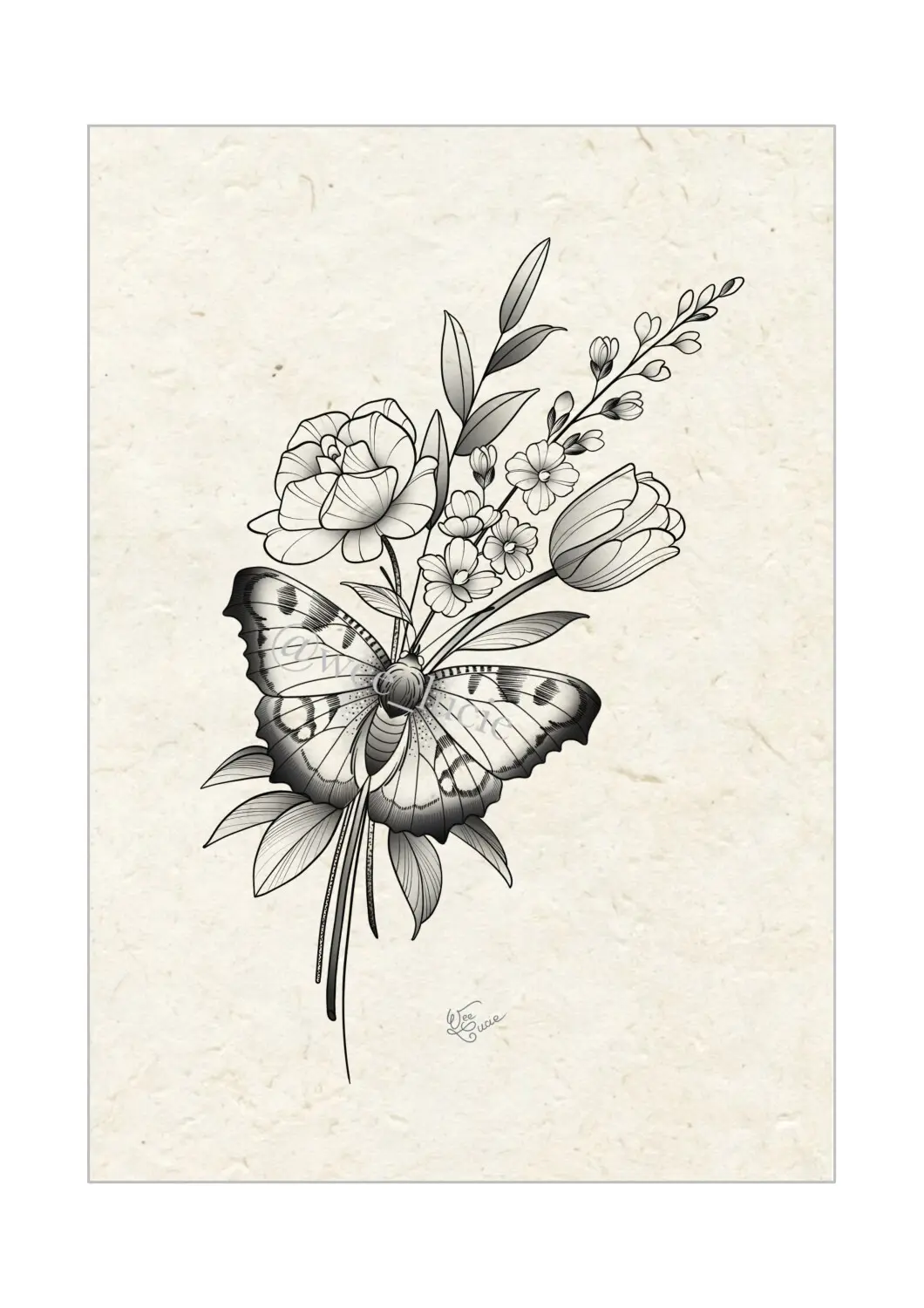 Bouquet rose, tulipe, papillon