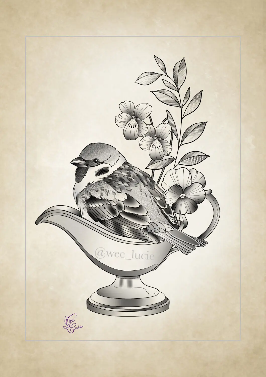 Moineau dans une saucière