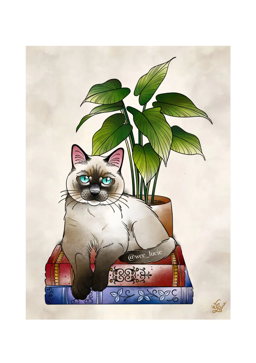 Chat siamois sur livres