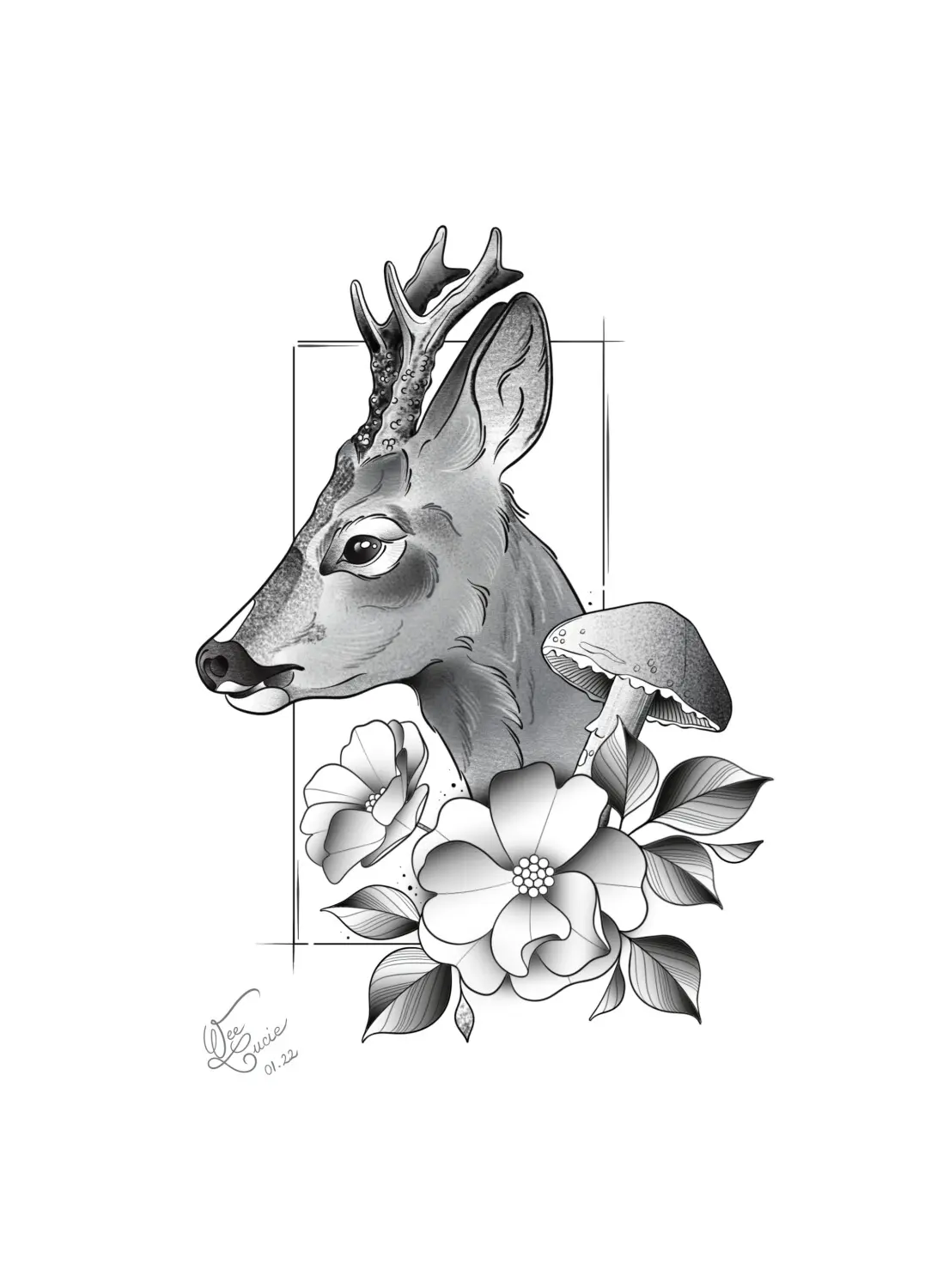 Chevreuil et champignon