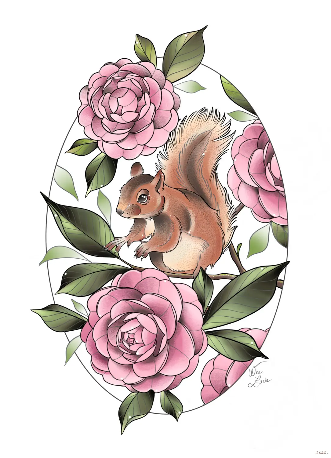 Écureuil et camélias