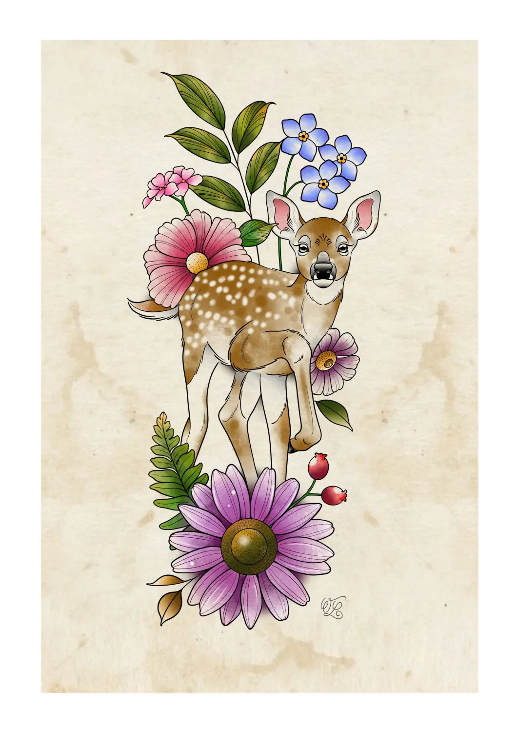 Cerf roses sauvages