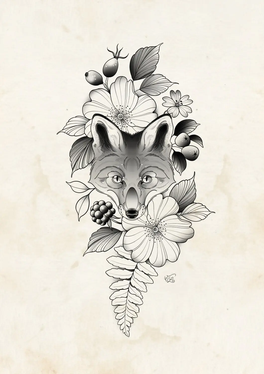 Compo renard églantiers