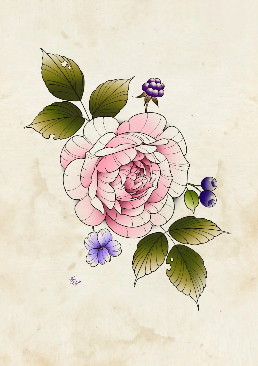 Compo rose, violette, baies